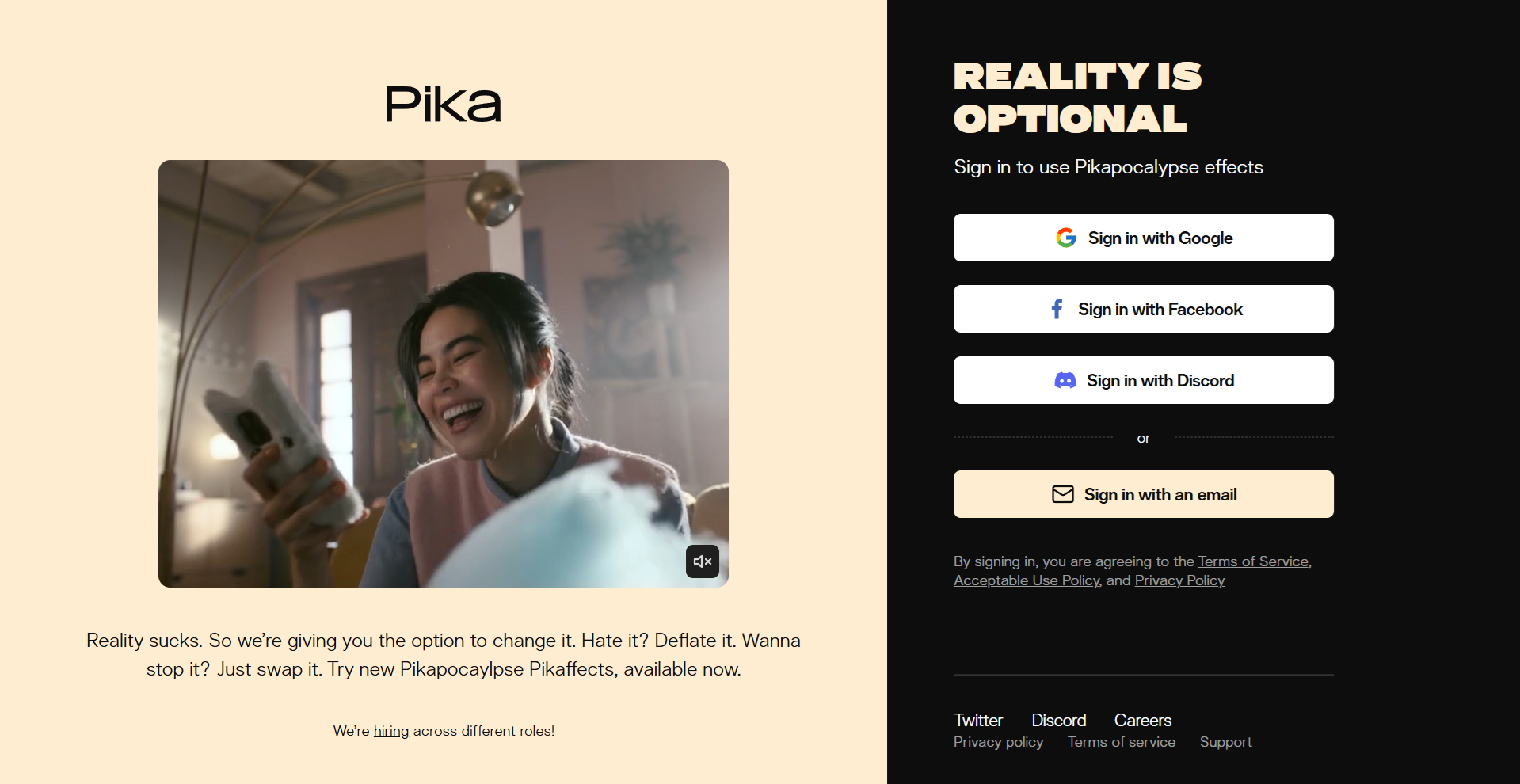 Pikaは「idea-to-video=アイデアを動画に」を掲げ、テキストや画像から高品質な動画を生成できるプラットフォームです。直感的な操作で多彩なビジュアルスタイルに対応し、専門知識がなくても映像制作をスタートしやすい環境を提供しています。